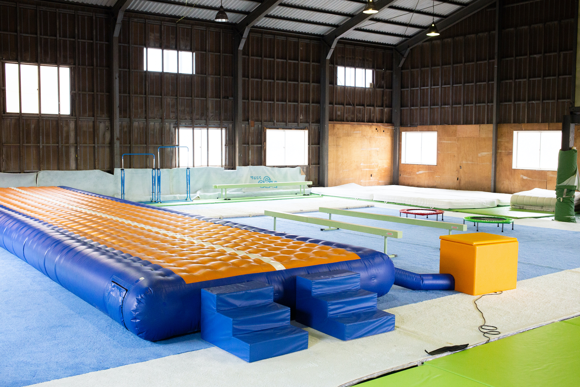 学校で行うような前転や開脚跳び、逆上がりなどの基礎的な技から、 個々のレベルに合わせたハンドスプリングや前方倒立回転跳びなどに挑戦できます。